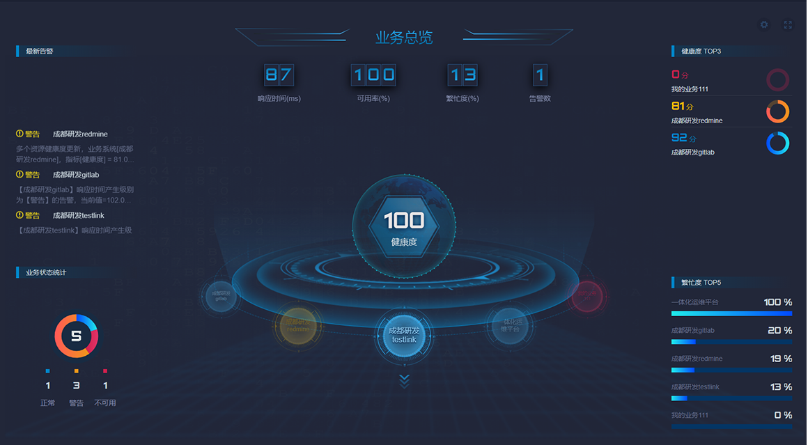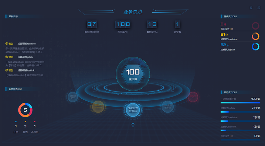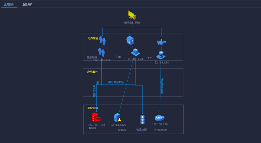 背景:由于業務系統底層支撐的各個設備分離,當業務系統出現故障(健康度、響應時間、存儲容量、數據庫容量、CPU容量、繁忙度、成功率等)時,不易對故障進行定位和診斷。
